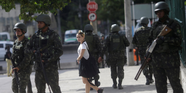Brazilian Army soldiers patrol Brazil Avenue in Rio de Janeiro, Brazil February 14, 2017. REUTERS/Ricardo Moraes