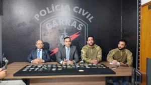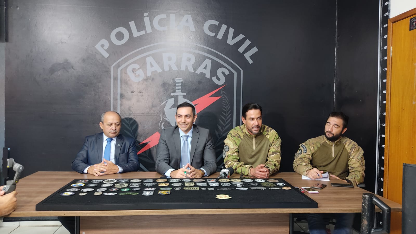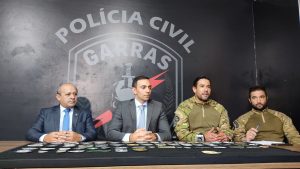 A Polícia Civil, por intermédio da Delegacia Especializada de Repressão a Roubo a Banco, Assaltos e Sequestros (Garras) e a Academia de Polícia Civil Delegado Júlio César da Fonte Nogueira (Acadepol), vai realizar em Campo Grande o I Curso de Operações Táticas Especiais (COTE). Para dar detalhes sobre o curso, aconteceu nesta quarta-feira, 16/03, uma entrevista coletiva na sede do Garras, que contou com a presença do Delegado-Geral da Polícia Civil – Roberto Gurgel de Oliveira Filho, do Diretor do Departamento de Polícia Especializada – Delegado Edilson dos Santos Silva, do Delegado titular do Garras – Fábio Peró e do Coordenador do COTE – Investigador Fabiano Alécio Manfrin.
