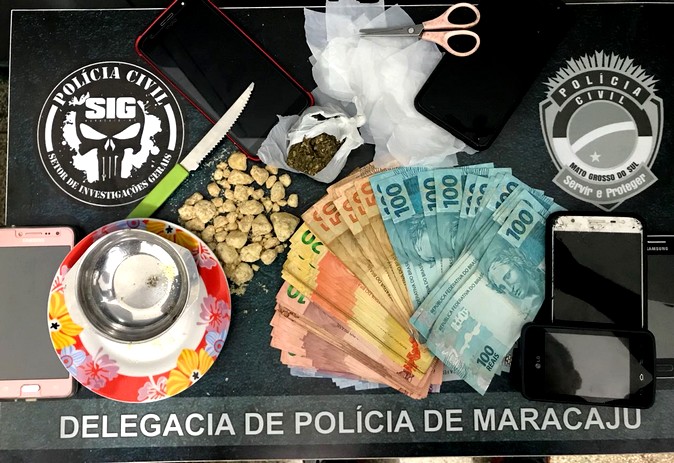 MARACAJU (MS) – Na noite de ontem (26), por volta das 20h45, o Setor de Investigações Gerais (SIG) da Delegacia de Polícia de Maracaju prendeu em flagrante Albino Cáceres (38), Carolina de Souza (27), Cilas Vasconcelos (26) e Fabiano Pereira Pedro