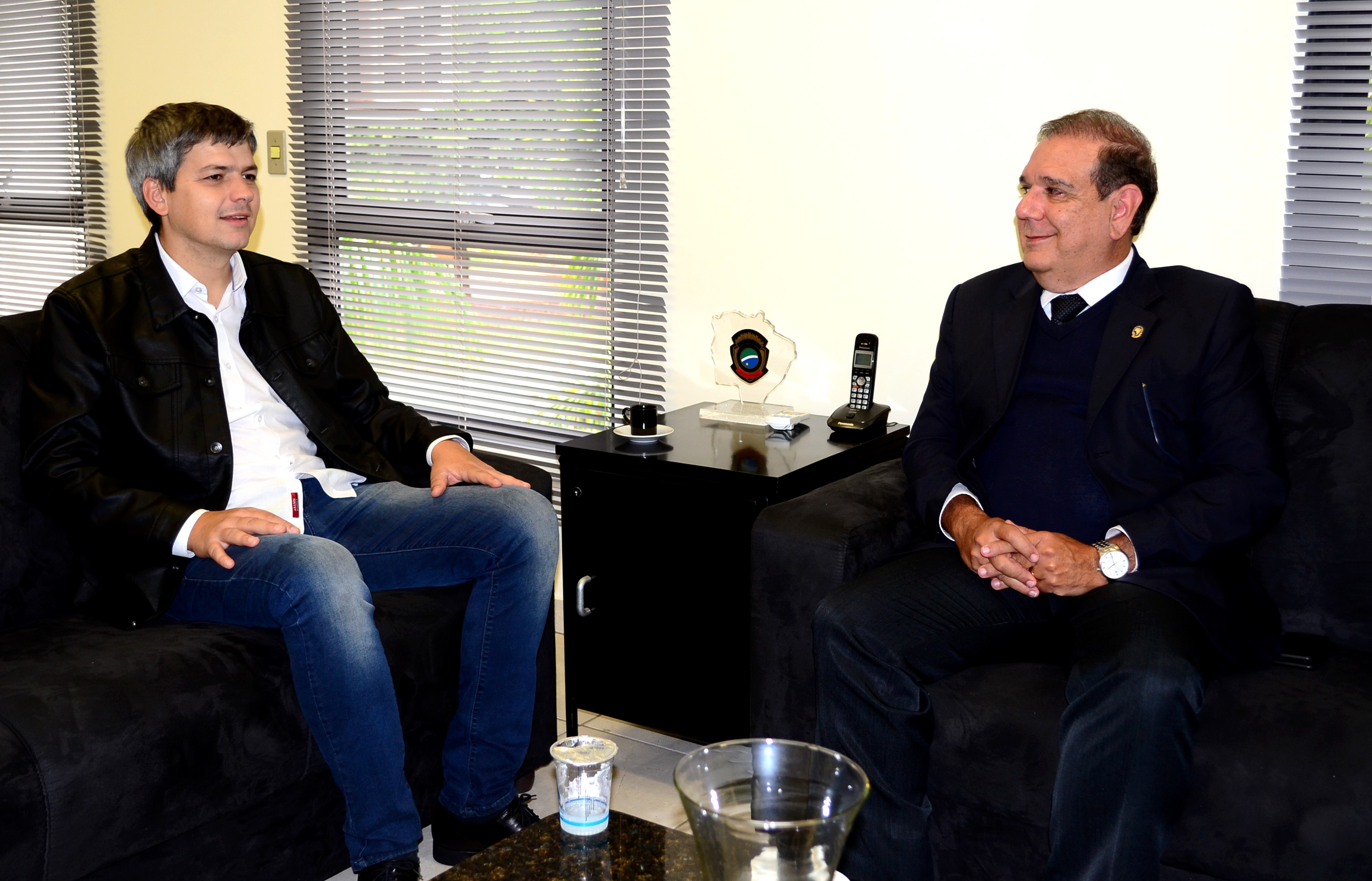 CAMPO GRANDE (MS) – O Delegado Geral da Polícia Civil do Mato Grosso do Sul – Dr. Marcelo Vargas Lopes recebeu na tarde desta segunda feira (4), o prefeito do município de Coxim, Aluízio São José, que aproveitou a oportunidade para agradecer à