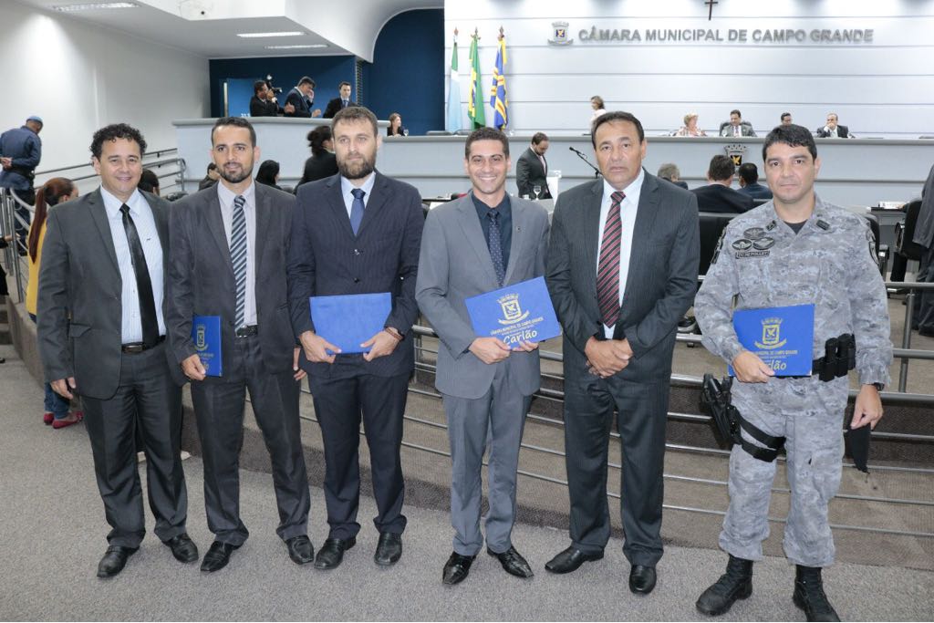 CAMPO GRANDE (MS): Na última quinta-feira (08), o Delegado Carlos Delano Gehring Leandro de Souza e o Delegado João Paulo Natali Sartori foram homenageados durante a sessão ordinária da Casa de Leis, pelo vereador Carlos Augusto Borges (Carlão), 1º