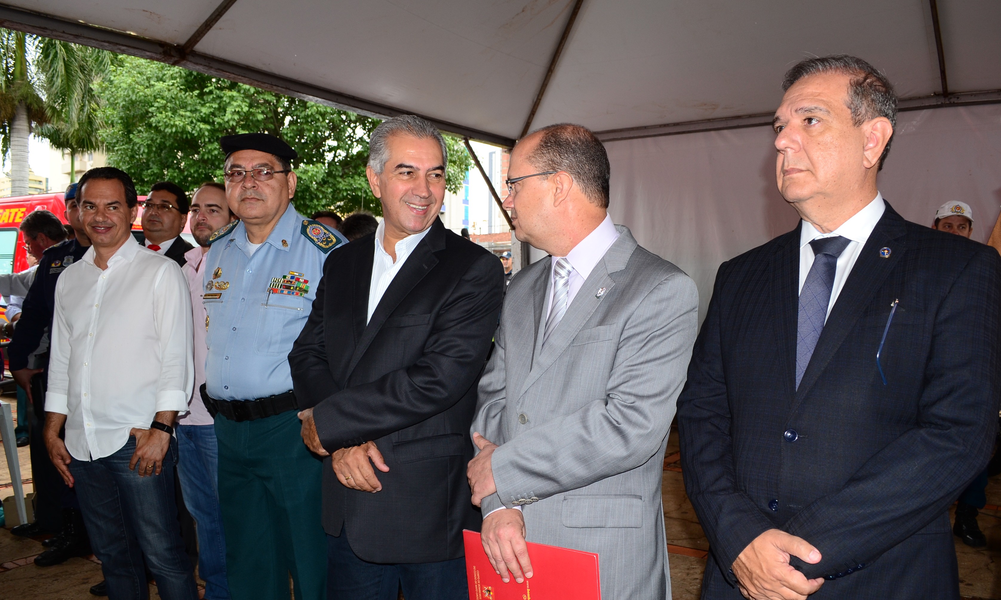 CAMPO GRANDE (MS) – Na manhã de hoje (8), na Praça do Rádio Clube, o Governador do Estado, Reinaldo Azambuja, com a presença do Secretário de Estado de Justiça e Segurança Pública, José Carlos Barbosa, do Delegado Geral da Polícia