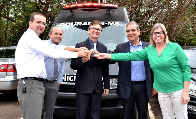 CAMPO GRANDE (MS): Na manhã de hoje (18) a Polícia Civil, por meio do Delegado Geral, Drº Marcelo Vargas Lopes, entregou ao Delegado Regional de Dourados, Drº Lupérsio Degerone, uma van, que vai auxiliar no transporte de presos das Delegacias para