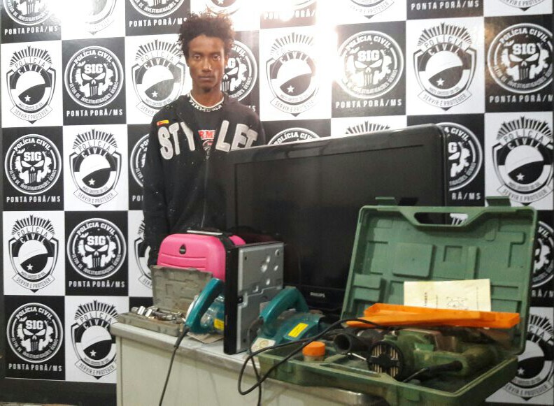 PONTA PORÃ (MS): No último dia três o Setor de Investigações Gerais de Ponta Porã prendeu em flagrante DOUGLAS CALIXTO FAVELA (20), pela prática de furto qualificado por rompimento de obstáculo. Na ocasião DOUGLAS, durante a madrugada, após