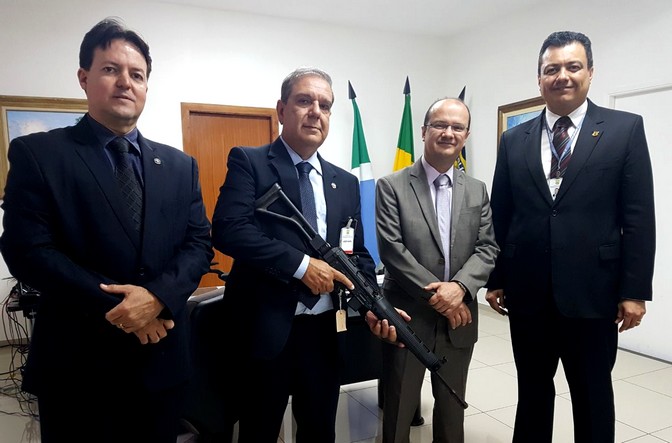 CAMPO GRANDE (MS): O Delegado Geral da Polícia Civil participou na manhã desta sexta-feira (30), de um ato na superintendência da Polícia Rodoviária Federal, no Mato Grosso do Sul, onde foi realizada a entrega de 21 carabinas CT .40 destinadas à