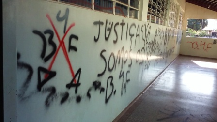 SETE QUEDAS (MS): A Polícia Civil de Sete Quedas apreendeu um grupo de adolescentes pichadores. Conforme os investigadores, os cinco menores, com idades de 16 e 17 anos, se auto intitulavam B4F decidiram pichar uma escola e planejaram toda a ação