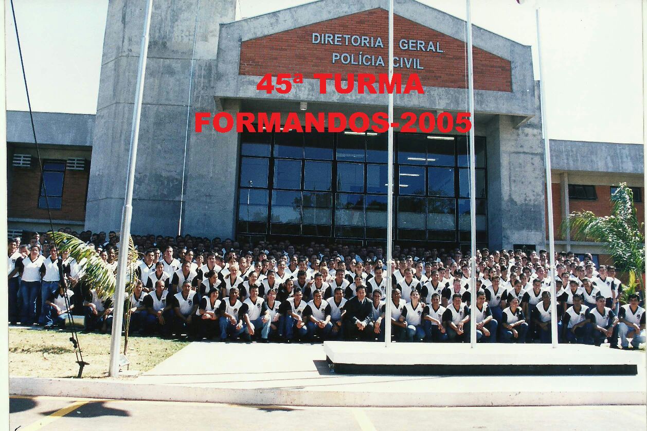 A Polícia Civil do Mato Grosso do Sul, através de seu Delegado Geral – Dr. Marcelo Vargas Lopes, parabeniza a todos os Investigadores de Polícia Judiciária que fizeram parte da Quadragésima Quinta Turma (45ª). Iniciada em fevereiro de 2006,