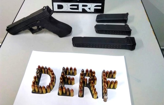 CAMPO GRANDE (MS): A Delegacia Especializada na Repressão aos Crimes de Roubos e Furtos (DERF) prendeu em flagrante, na tarde de ontem (09), em Campo Grande, Vanderlei Souza Castro (36), conhecido como Bimbo, pelo crime de porte ilegal de arma de fogo de uso