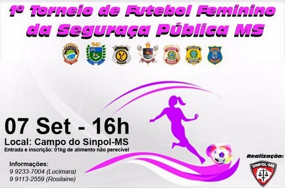 CAMPO GRANDE (MS): Em comemoração ao dia do policial civil, o Sinpol-MS (Sindicato dos Policiais Civis de Mato Grosso do Sul) realiza, no dia 07 de setembro, o 1º Torneio de Futebol Feminino da Segurança Pública. Os jogos acontecerão na sede do