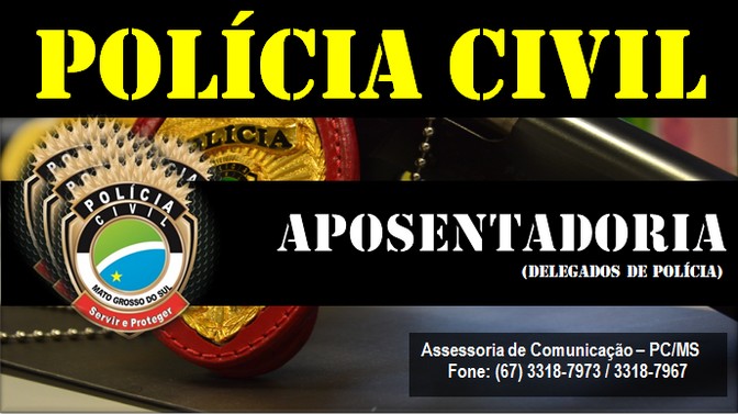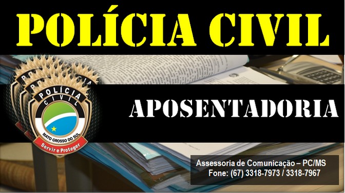 CAMPO GRANDE (MS): Foi publicado hoje (19) no Diário Oficial do Estado de Mato Grosso do Sul, Nº 9.232, página 63, a aposentadoria do servidor ARIOSMAR FERREIRA DA SILVA, ocupante do cargo de Direção e Assistência da Polícia Civil, Agente de Polícia.