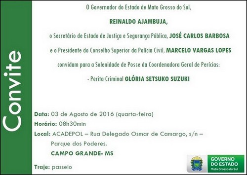 CAMPO GRANDE (MS): Na próxima quarta feira (03/08), na Academia da Polícia Civil Júlio Cesar da Fonte Nogueira (Acadepol), às 08h30m, com a presença do Governador do Estado de Mato Grosso do Sul, Reinaldo Azambuja, do Secretário de Estado de Justiça e