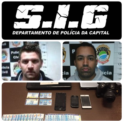 CAMPO GRANDE(MS): Investigadores de Polícia do SIG/DPC em diligências após denúncia recebida via CIOPS, conseguiram identificar e prender, P. R. S. A.Q. e M. P. de A. ambos de 24 anos, que mantinham um esquema para falsificar e vender carteirinhas de