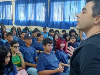 Na última quinta-feira (20), a Polícia Civil, por intermédio da Autoridade Policial de Terenos, a convite da Secretaria Municipal de Educação, ministrou uma palestra para alunos da Escola Municipal Salustiano da Motta, no Assentamento Patagônia. Durante