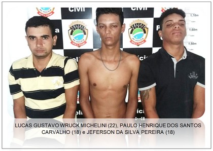 BATAYPORÃ (MS): A Polícia Civil prendeu na noite do último dia (06/04), três jovens, LUCAS GUSTAVO WRUCK MICHELINI (22), JEFERSON DA SILVA PEREIRA (18), PAULO HENRIQUE DOS SANTOS CARVALHO (18) e apreendeu um adolescente de 16 anos de idade, suspeitos de
