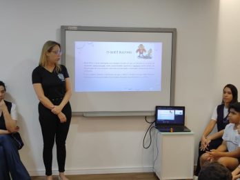 A delegada titular da Delegacia Especializada DEAIJ, Daniella Kades de Oliveira Garcia, realizou palestra com o tema “Prevenção ao Bullying e Violência contra a Mulher”, na Escola Espaço Livre, em Campo Grande, nesta quinta-feira (2). A