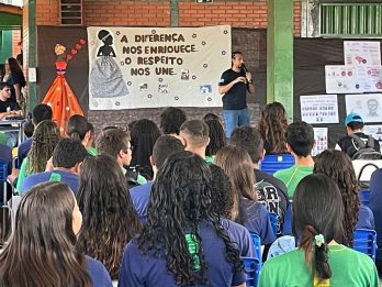 Na manhã de hoje (19), o delegado titular da Delegacia de Polícia Civil de Ribas do Rio Pardo – Felipe Braga – esteve presente na Escola Estadual Eduardo Batista Amorim, onde realizou uma palestra em celebração ao Dia da Consciência Negra,