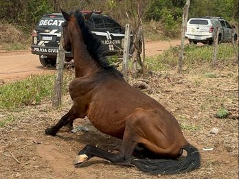 Diligências de verificação de denúncia realizada pela Delegacia Especializada de Repressão a Crimes Ambientais e Atendimento ao Turista – DECAT na Capital resultaram na prisão em flagrante de uma mulher e no resgate de dois cavalos. No primeiro