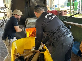 A Polícia Civil, por meio da Delegacia de Dois Irmãos do Buriti, realizou na última quinta-feira (13), a incineração de aproximadamente 585 kg de entorpecentes, em recentes apreensões de maconha. Destaca-se que o procedimento foi realizado seis dias