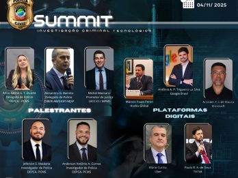A Polícia Civil do Estado de Mato Grosso do Sul vai realizar, no dia 4 de novembro, o Summit de Investigação Criminal Tecnológica, em Campo Grande. O evento será realizado das 8h às 17h, no Auditório Bioparque Pantanal, e reunirá representantes das