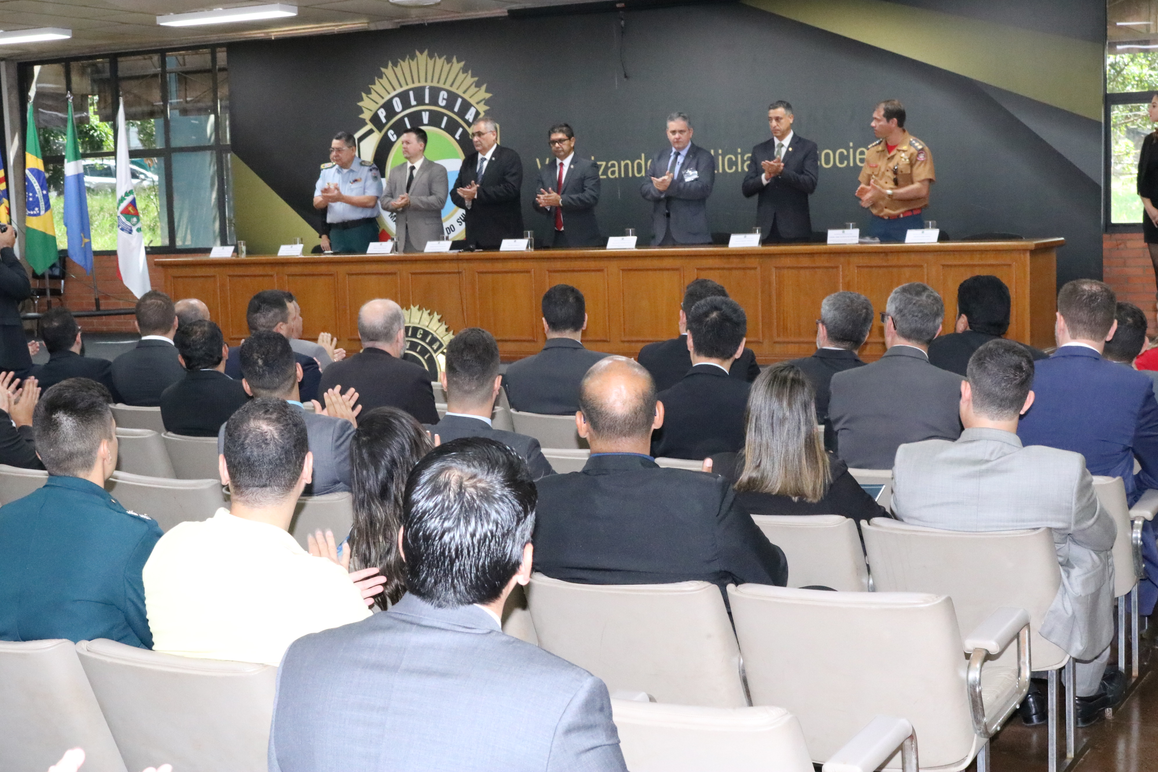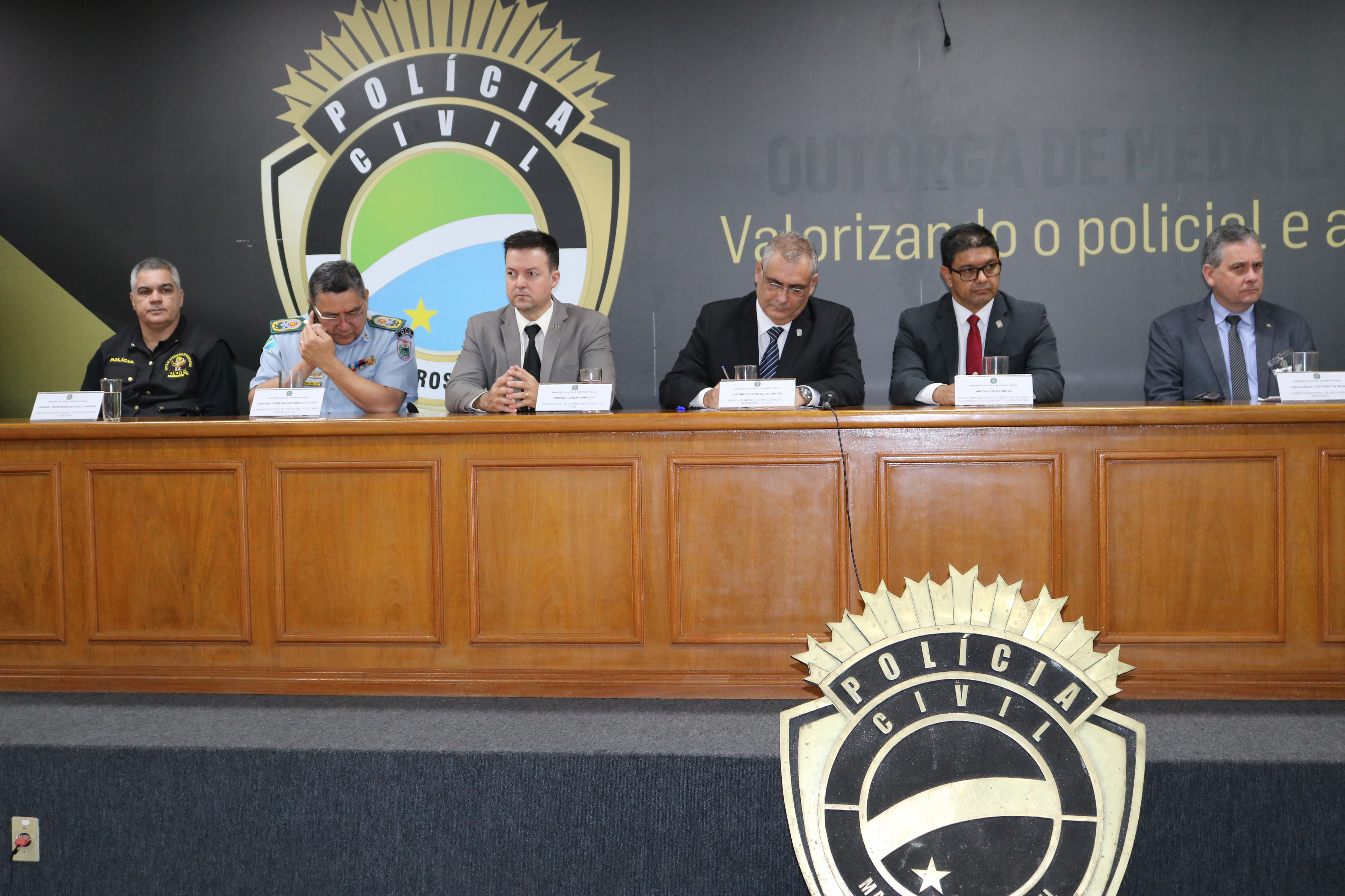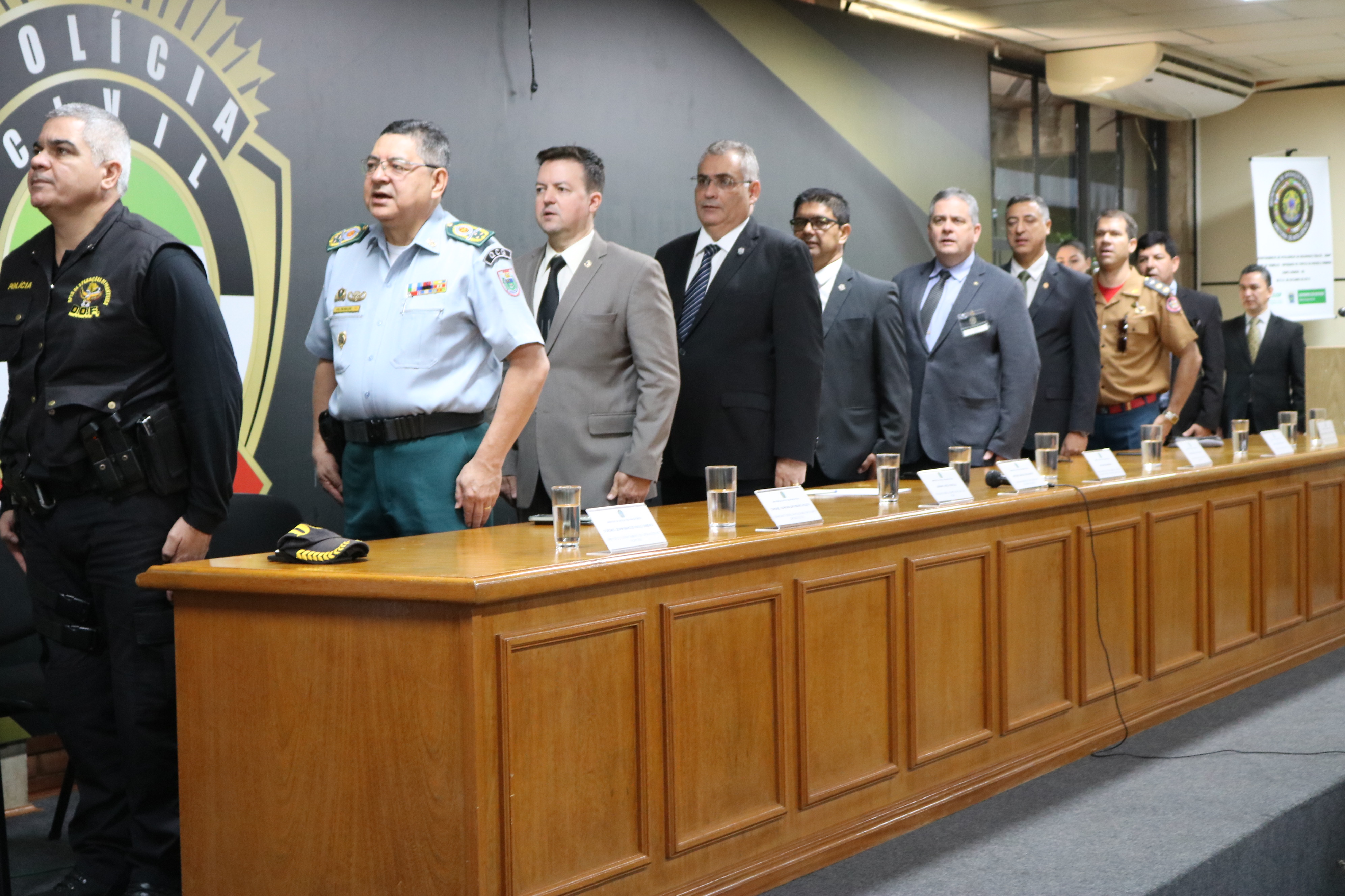 Participaram da abertura do evento o secretário-adjunto de Justiça e Segurança Pública – Ari Carlos Barbosa; o Delegado-Geral Adjunto da Polícia Civil – Adriano Garcia Geraldo; o superintendente de Inteligência e Segurança Pública – Antonio Carlos Costa Mayer; o comandante geral da Polícia Militar – coronel Waldir Ribeiro Acosta; o comandante geral do Corpo de Bombeiros Militar – tenente coronel César Pereira da Silva; o vice-diretor da Agepen – Pedro Paulo Pietro; o diretor da Academia de Polícia – delegado Devair Aparecido Francisco; o diretor do Departamento de Operações da Fronteira – coronel Marcos Paulo Gimenez; o diretor do Departamento de Inteligência Policial – delegado Edilson dos Santos e o coordenador-geral de Inteligência da da Dint/Seopi – Luiz Carlos Custódio da Silva.