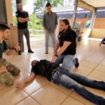 Conteúdo programático: Distinguir as diferenças entre o Atendimento Pré-hospitalar convencional e o Atendimento em combate; Citar a evolução e os aspectos do Atendimento Pré-hospitalar em combate; Definir e executar o Protocolo MARC1 de Atendimento Pré-Hospitalar em Combate do Grupo TIGRE PCPR; Executar a segurança do local de atendimento respondendo a ameaças imediatas; Executar o atendimento remoto com a vítima se possível; Realizar o atendimento da vítima em área quente utilizando o torniquete de combate; Realizar a avaliação da vítima; Iniciar o Protocolo MARC1 no atendimento a vítima; Utilizar as técnicas para conter hemorragias em extremidades de membros e áreas juncionais utilizando o Torniquete de Combate ou a Gaze de Combate; Avaliar as condições das vias aéreas e garantir que estejam pérvias, caso seja necessário utilizar o recurso de manobras de tração ou posição olfativa para mantê-las desobstruídas; Utilizar uma canola nasofaringe para manter as vias aéreas pérvias ou em situação preventiva em vítima inconsciente; Avaliar o tórax do paciente e o dorso com o objetivo de encontrar buracos resultantes de perfuração de arma de fogo; Utilizar o Selo de Tórax para manter a oclusão dos orifícios; Avaliar sinais e sintomas de Pneumotórax hipertensivo no paciente; Utilizar a manobra “BURP” para reverter o Pneumotórax hipertensivo; Manter a vítima seca, aquecida e prepará-la para a evacuação médica.
