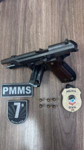 Na data do ocorrido (18), igualmente com apoio do 2º Pelotão da Polícia Militar de Miranda, foi preso o indivíduo D.C.S (40), em posse de uma arma de fogo. A ação se deu após denúncias de que um homem havia postado uma foto em rede social, ostentando uma arma de fogo do tipo pistola, e que também estariam disparando tiros no Povoado de Salobra. No local, as equipes identificaram os dois homens da postagem, onde foi apreendida uma pistola calibre .765, com munições calibre .32. Também houve apreensão de uma motocicleta que teria sido conduzida durante o atentado ocorrido na praça.