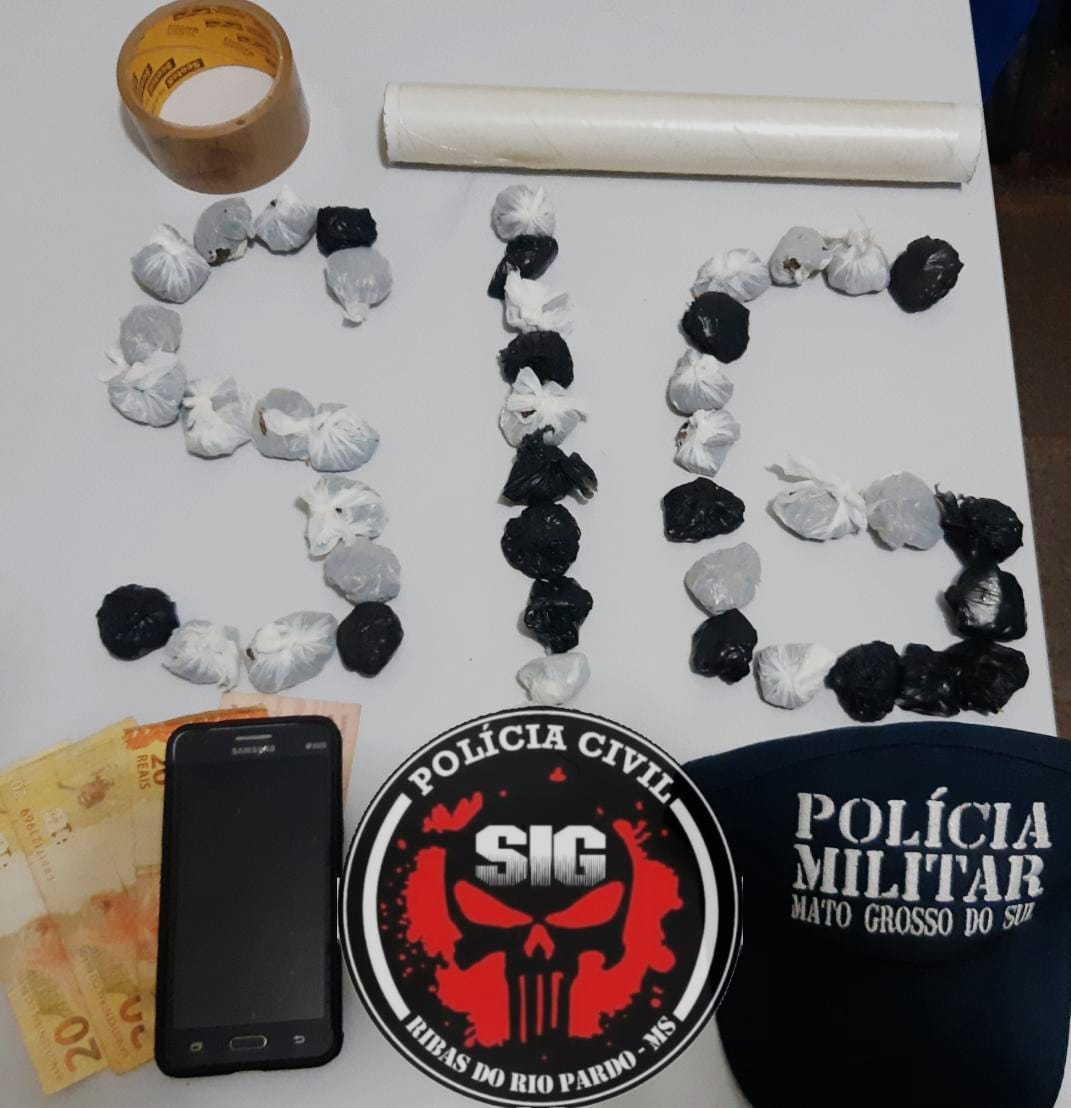 Ribas do Rio Pardo (MS): Na tarde desta terça-feira (29), investigadores do Setor de Investigações Gerais da Delegacia de Polícia Civil de Ribas do Rio Pardo e a Polícia Militar fecharam uma boca de fumo no Bairro Centro Velho e prenderam em flagrante uma mulher de 36 anos, suspeita de praticar o crime de tráfico de drogas sob ordem de seu namorado, de 30 anos, atualmente lotado na Penitenciária de Segurança Máxima.