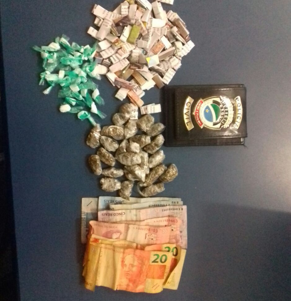 No local ainda foram apreendidos uma balança de precisão, rolos de papel para embrulhar os entorpecentes e dinheiro proveniente da venda de drogas.