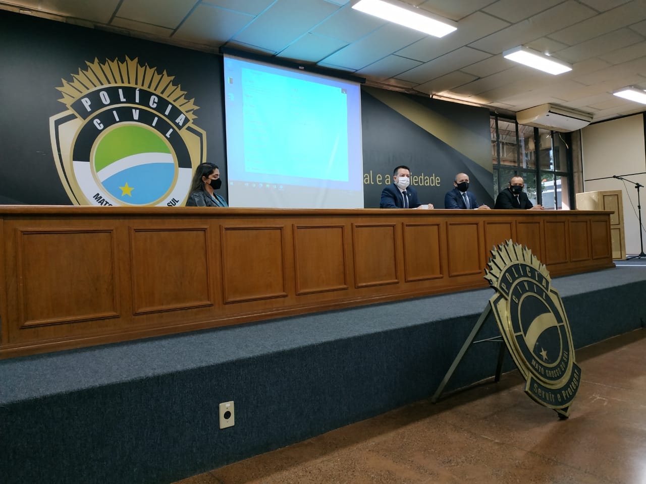 Campo Grande (MS): O Delegado Geral da Polícia Civil, Adriano Garcia Geraldo, a Delegada Geral Adjunta, Rozeman Rodrigues de Paula, o diretor do Departamento de Polícia da Capital, Edilson dos Santos Silva e o coordenador do DPC, Delegado Mario Donizete participaram, na manhã desta terça-feira (27), de uma reunião com os delegados titulares das Delegacias de Polícia da Capital, na Acadepol-MS.