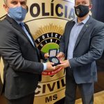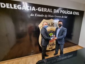 Campo Grande (MS): O Delegado-Geral da Polícia Civil – Adriano Garcia Geraldo – recebeu, na tarde desta quinta-feira (23), a visita do Adido Policial Adjunto, da Embaixada da França no Brasil, com sede em Brasília – Sergie Giordano. Na ocasião, o Delegado-Geral foi agraciado com uma honraria das forças de Segurança Pública Francesa.