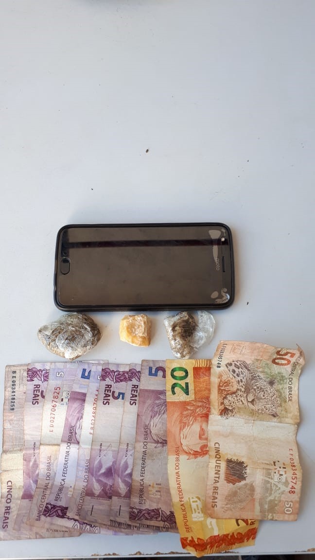 diligencias na vila Nhanhá, abordaram um adolescente de 15 anos de idade em atitude suspeita e que aparentou nervosismo quando viu a viatura. Em revista pessoal foi encontrado em seu bolso duas porções de substancia análoga a maconha, logo de pronto relatou que em sua residência havia mais uma porção de pasta base de cocaína, além de uma moto e certa quantia em dinheiro.