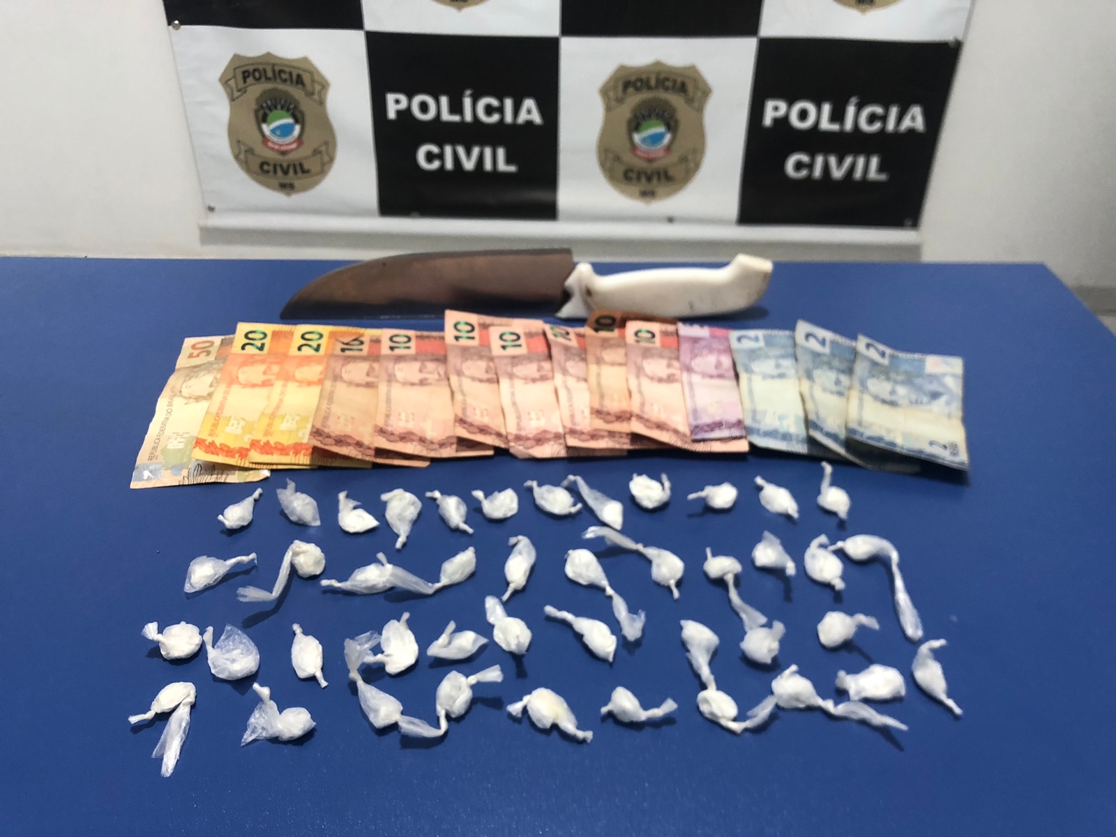 De acordo com o apurado, M.S.E., de 17 anos, que seria integrante de uma associação criminosa, foi apreendido no momento em que extorquia uma de suas vítimas. Na casa dele, no momento da abordagem policial, foram apreendidos, ainda, 43 papelotes de cocaína.