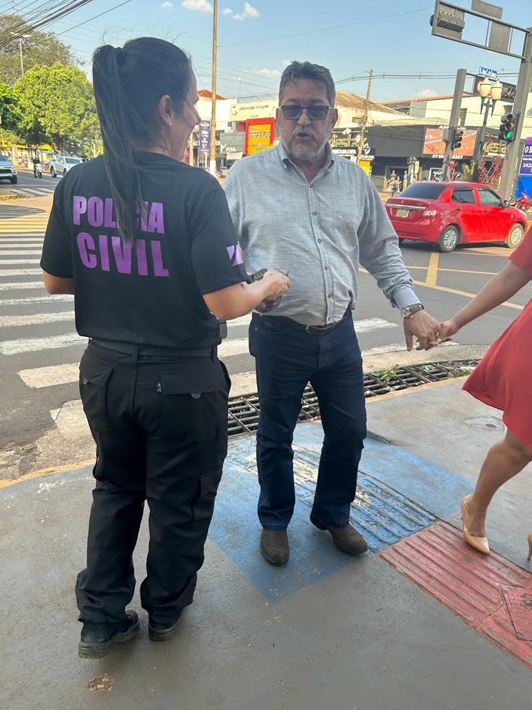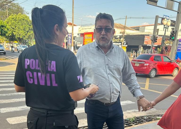 Agosto Lilás – Polícia Civil realiza blitz educativa em Dourados, com distribuição de panfletos sobre violência doméstica