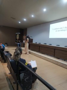 Foram ministradas falas pelas Delegadas lotadas na DAM de Dourados: Ariana da Silva Gomes, Ana Cláudia Pimentel Malheiros Gomes e Thays do Carmo Oliveira de Bessa, bem como dos convidados Sargento QPPM Adelino Aparecido de Oliveira Schibilski e da Diretora-Geral da GMD Liliane Graziele Cespedes de Souza Nascimento. O Delegado-Regional de Dourados, Adilson Stiguivitis, também esteve presente.
