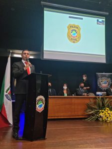 O diretor da Acadepol – delegado Devair Francisco – falou sobre a importância da fase de instrução. “Vocês receberão durante todo o curso, através do nosso corpo docente, uma gama de informações que darão um norte a ser seguido neste sacerdócio de Servir e Proteger. É importante que saibam que as capacitações não se encerram aqui nesta fase que se inicia. Os senhores e senhoras terão ao longo da vida funcional inúmeras oportunidades e mesmo a obrigação de se manterem atualizados para manter a qualidade do serviço prestado pela nossa Polícia, atendendo da melhor forma possível a nossa população. Os senhores e senhoras serão extremamente exigidos durante a Academia, porém todo esforço será recompensado com a merecida nomeação”, destacou.