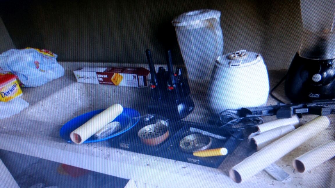 Além da droga foram apreendidos: uma balança de precisão, diversos papéis de seda, dois rádios amadores de comunicação, diversos rolos de película aderente ou filme, um dichavador usado para esfarelar a droga, um simulacro de arma de fogo, uma colher e um prato na cor azul e também um celular da marca Samsung de cor dourada, que segundo os investigadores é produto de roubo conforme registro de boletim de ocorrência registrado na 4ª Delegacia de Polícia Civil de Campo Grande.