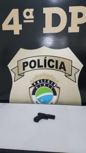 Interpelado pelos policiais, o autor entregou a arma do crime e foi indiciado. As diligências seguem realizadas na intenção de prender o comparsa.