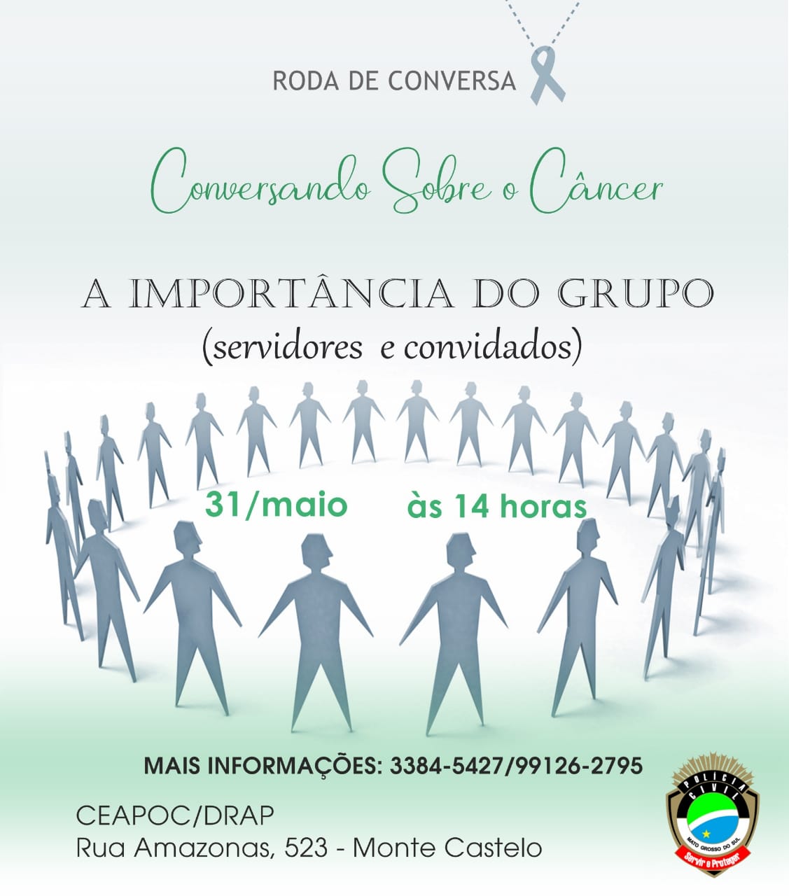 Campo Grande (MS): A Polícia Civil, através do CEAPOC – Coordenadoria de Atendimento Psicossocial da PC, convida servidores e seus familiares interessados no tema, para participarem da Roda de Conversa; A importância do Grupo no tratamento oncológico