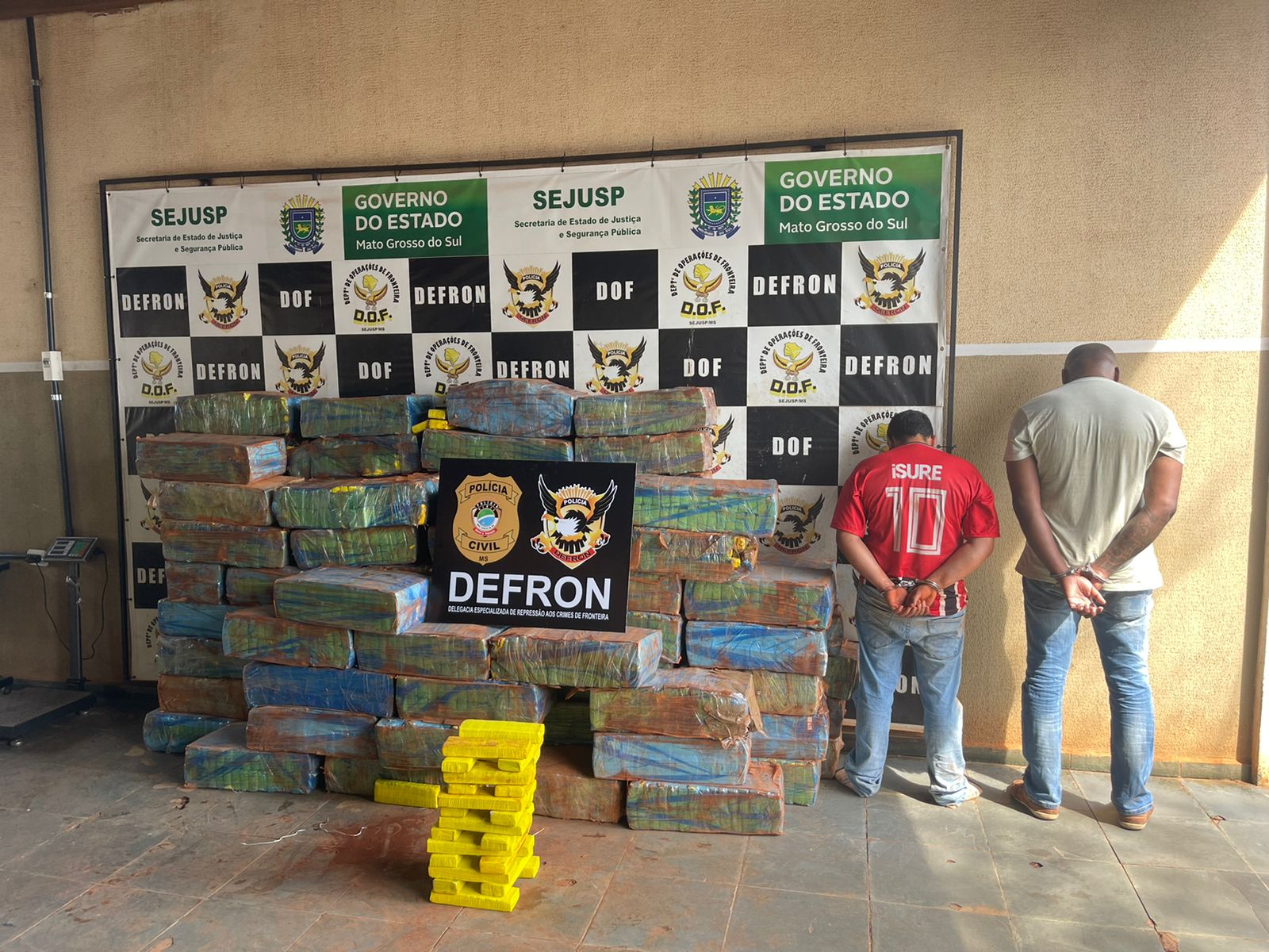 Ao ser realizada incursão no imóvel, os policiais identificaram que dois indivíduos, com idades de 22 e 48 anos, se encontravam no local, sendo um douradense e outro oriundo do Estado do Rio de Janeiro, esse último possuindo várias passagens por tráfico de drogas.