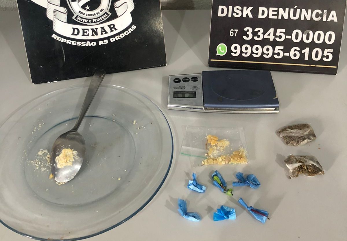 Os produtos já estavam preparados para a venda. O casal foi autuado em flagrante pela prática do crime de tráfico de drogas.