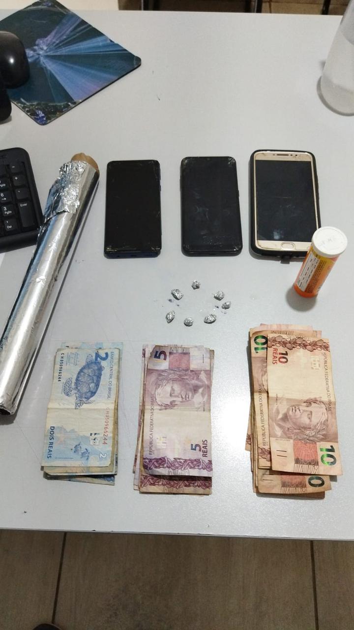 Com a suspeita de que o adolescente infrator teria jogado o entorpecente pela descarga, os investigadores retiraram a tampa da fossa séptica e encontraram nove pedras de crack, que foi devidamente apreendida. Além das pedras de crack e do dinheiro, foram apreendidos três celulares e um aparelho televisor sem origem lícita comprovada, bem como material para acondicionamento do entorpecente.