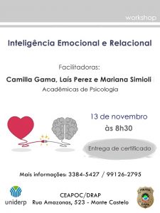 familiares para participarem do Worshop: Inteligência Emocional e Relacional, que ocorrerá no dia 13/11 às 08:30hs na sede da Ceapoc.