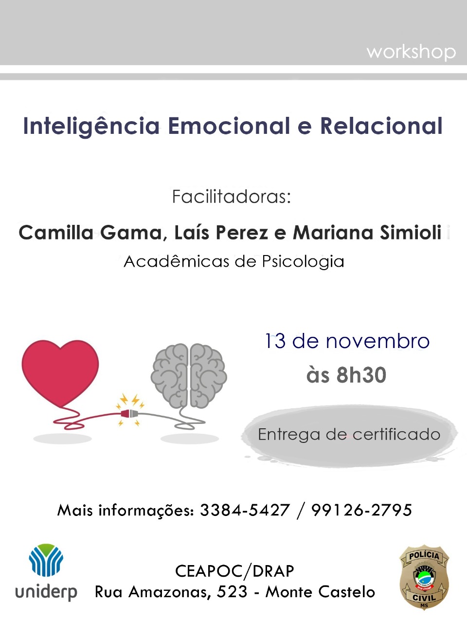 Campo Grande (MS): A Coordenadoria de Atendimento Psicossocial da Polícia Civil – Ceapoc convida servidores e seus