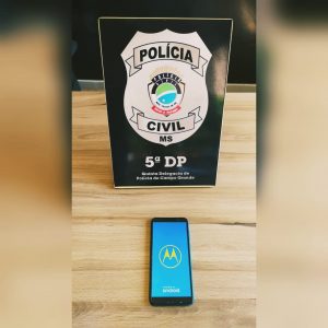 Campo Grande (MS): Na manhã desta quarta-feira (18), policiais civis do Setor de Investigações Gerais (Sig) da 5ª Delegacia de Polícia, deslocaram até uma residência no Jardim Canguru, em Campo Grande, onde localizaram um aparelho celular Marca Motorola, modelo E6 Play, que foi furtado dia 04/09 da vitrine de uma loja no interior de um shopping.