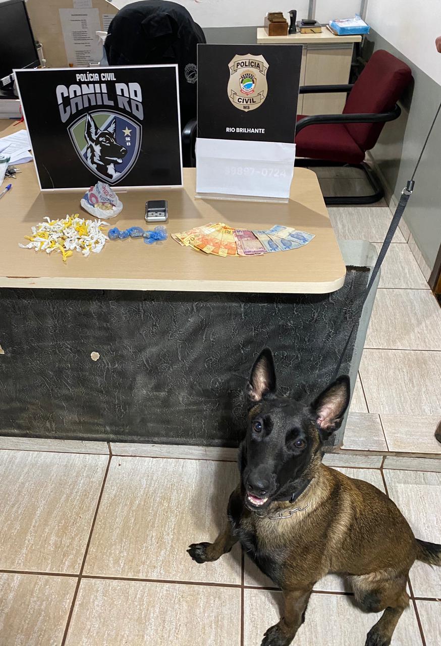 Com auxílio de cães farejadores, Polícia Civil prende dois homens por tráfico de drogas e receptação em Rio Brilhante