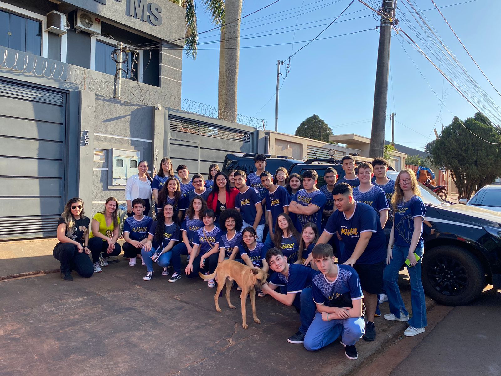Delegacia de Atendimento à Mulher recebe alunos para atividade da campanha Agosto Lilás em Ponta Porã