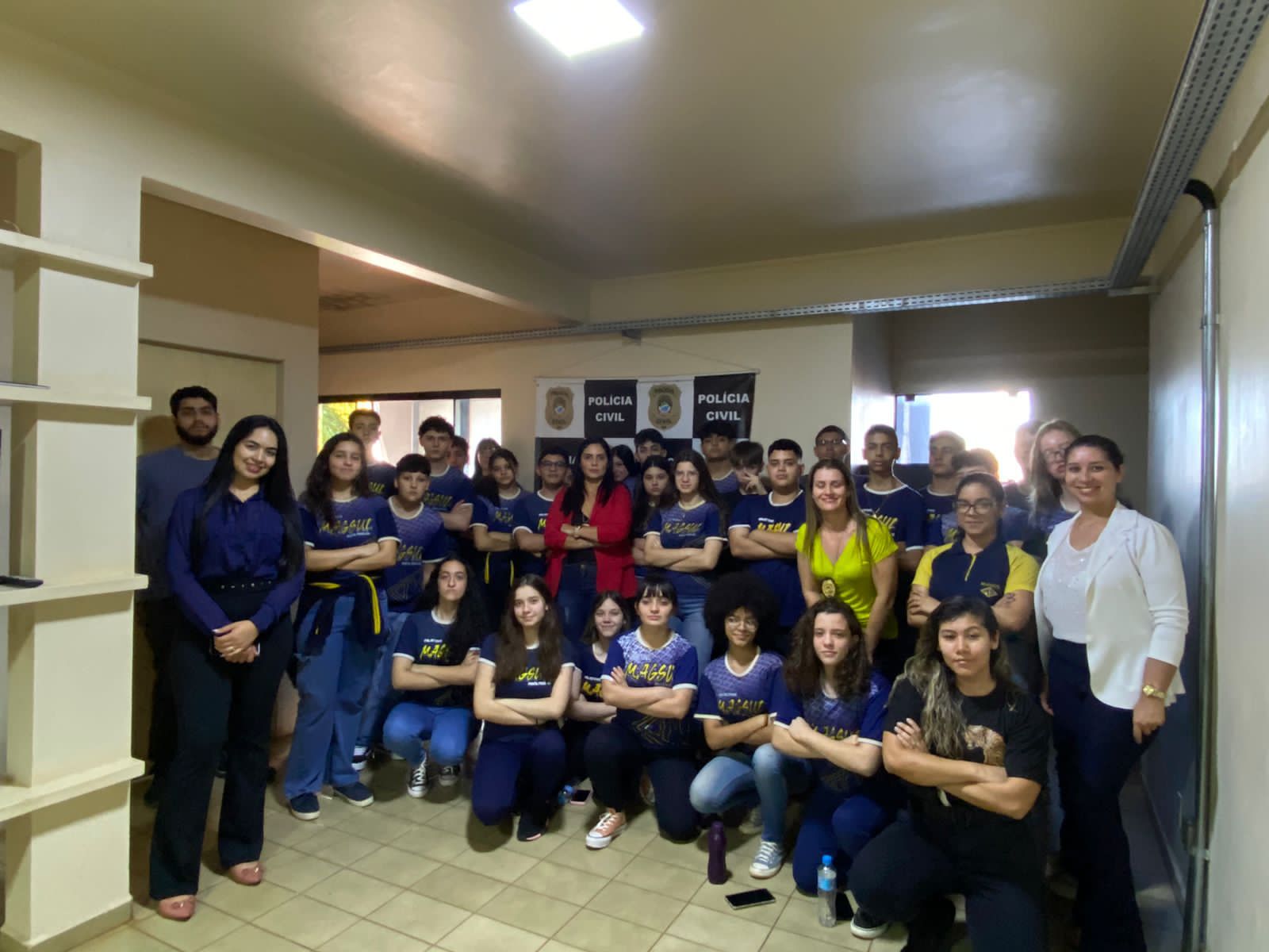 No âmbito das ações da campanha Agosto Lilás, que visa a conscientização sobre a violência doméstica e familiar contra a mulher, a Polícia Civil, por intermédio da Delegacia de Atendimento à Mulher (DAM) de Ponta Porã/MS realizou uma iniciativa especial nesta quinta-feira, 10/08, ao receber alunos do ensino médio da escola FIP MAGSUL.