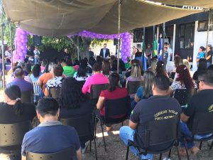 A solenidade contou com a presença do Delegado Geral da Polícia Civil, Roberto Gurgel de Oliveira Filho, da Subsecretária Estadual de Políticas Públicas para Mulheres, Luciana Azambuja, Diretor do Departamento de Polícia do Interior – Delegado Lupérsio Degerone Lúcio, Delegado Regional de Jardim – Amylcar Eduardo Paracatu Romero, Delegada da Delegacia de Atendimento à Mulher de Jardim -Marina Lemos Monteiro Conceição e prefeito Nelson Cintra.
