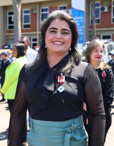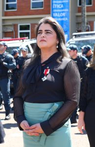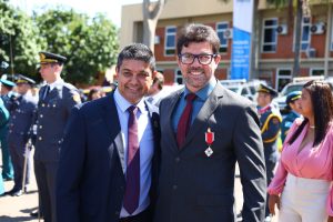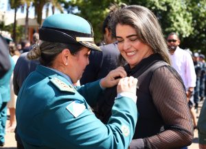 Nesta sexta-feira (15), a Delegada-Geral Adjunta da Polícia Civil do Mato Grosso do Sul, Rozeman Geise Rodrigues de Paula, foi honrada com a Medalha de Insígnia do Mérito da Polícia Militar do estado. A solenidade de outorga das medalhas marcou as comemorações dos 188 anos da Polícia Militar do Mato Grosso do Sul e foi realizada no prédio do Comando Militar, situado no Parque dos Poderes, em Campo Grande.