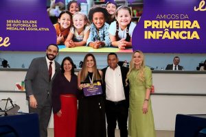 A honraria foi entregue durante sessão solene instituída pela Resolução n. 1.376/23, destinada a reconhecer pessoas e instituições que se destacam na atenção, proteção e garantia de direitos da primeira infância. Conforme a Lei nº 13.257/2016, a primeira infância corresponde aos seis primeiros anos de vida e exige políticas públicas integradas em áreas como saúde, assistência social, educação, cultura e justiça.